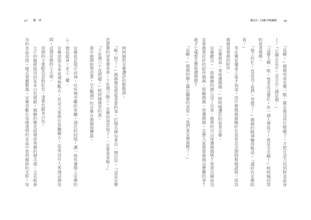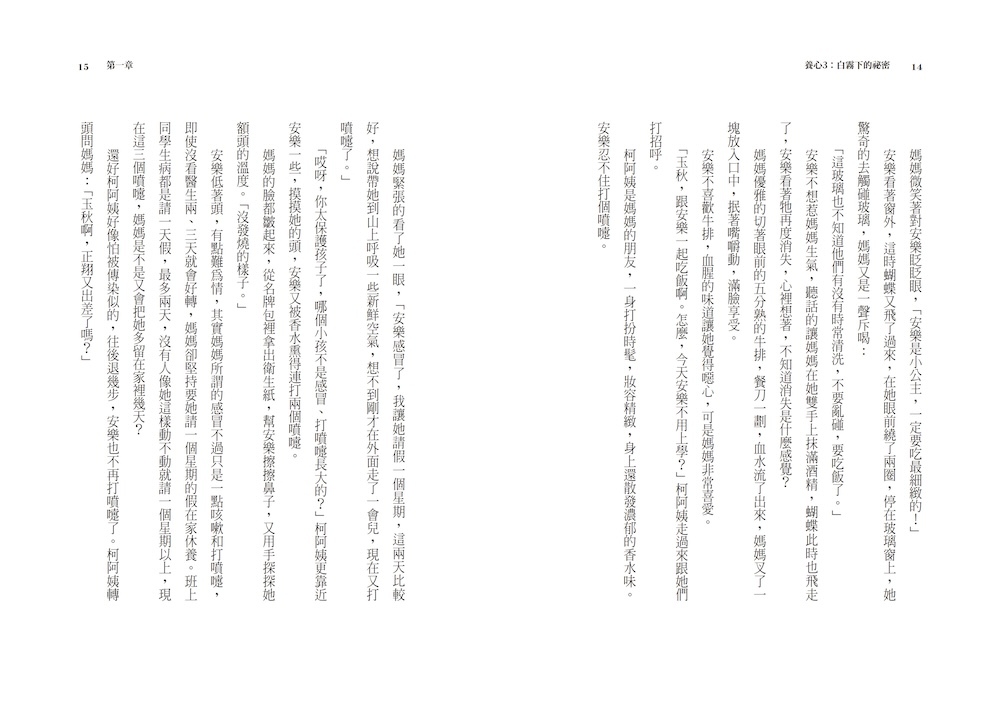 第三特色是好句連連,郁如老師筆下的角色對話,不只是情節的推展,更為我們帶來深刻的思考,例如「意見不同不代表就是敵對的人」、「有情緒是正常的,重要的是,你怎麼處理這些情緒」、「遇到問題,想的是如何用另一個問題來解決,這樣情況只會越來越嚴重,讓你越陷越深,現在你下定決心面對,終於找到真正的答案」。當我讀到引心使者對主角晨欣說這些話的當下,彷彿也是在對我訴說一般,深深打動我的心思。