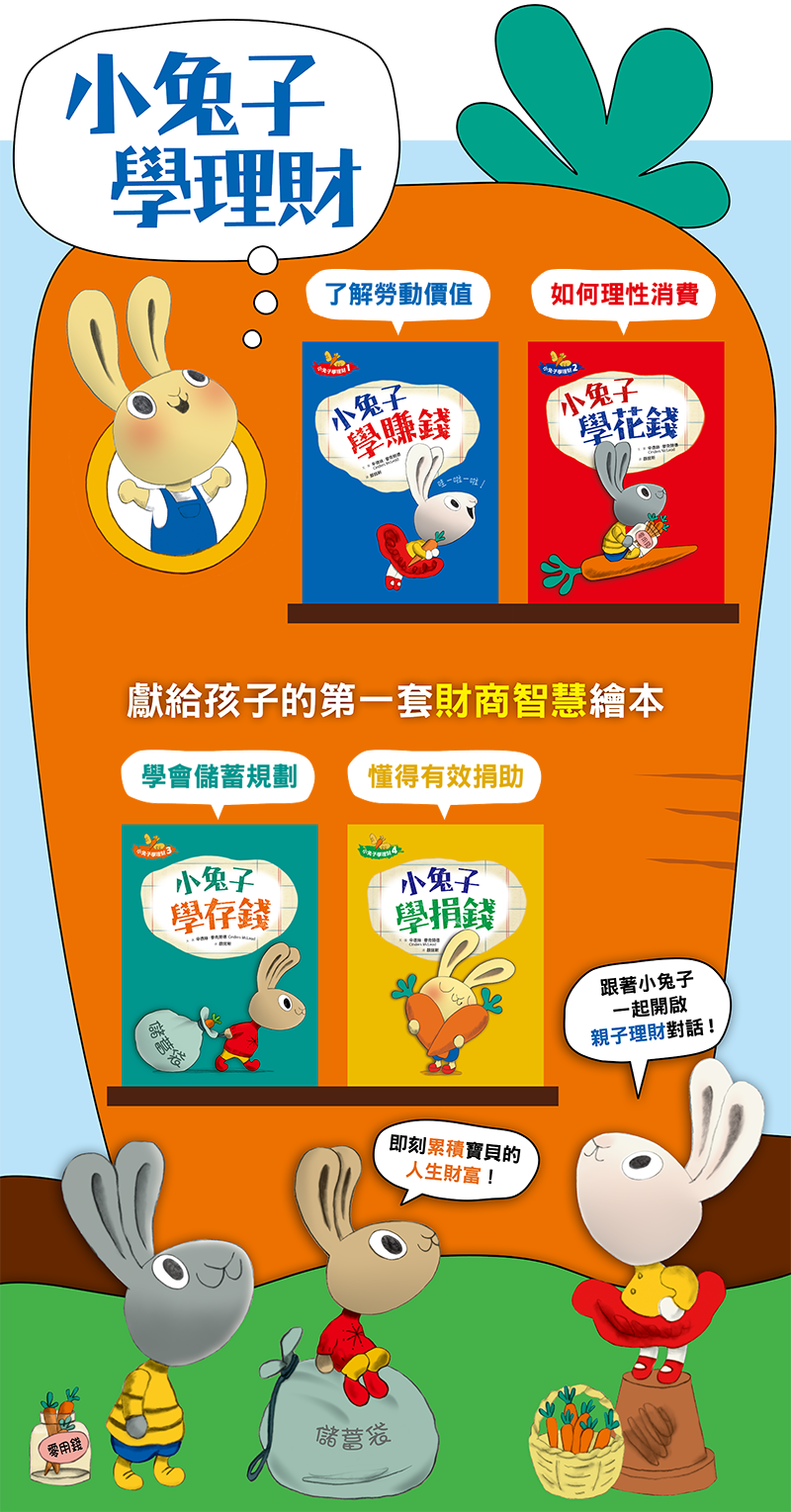 理財不是一味的儲蓄,「小兔子學理財」系列透過童趣的情節轉化抽象的理財知識,是新世代孩子理財入門首選。